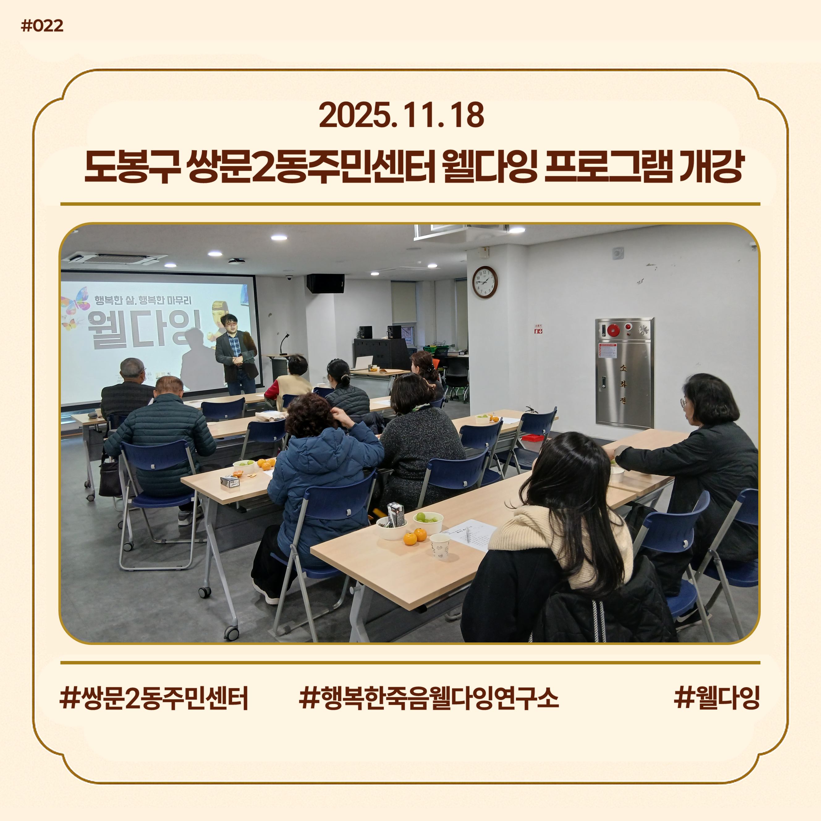| 2025. 11. 13 월계종합사회복지관 3회기 웰다잉 프로그램 개강 (0) | 2025.12.14 |