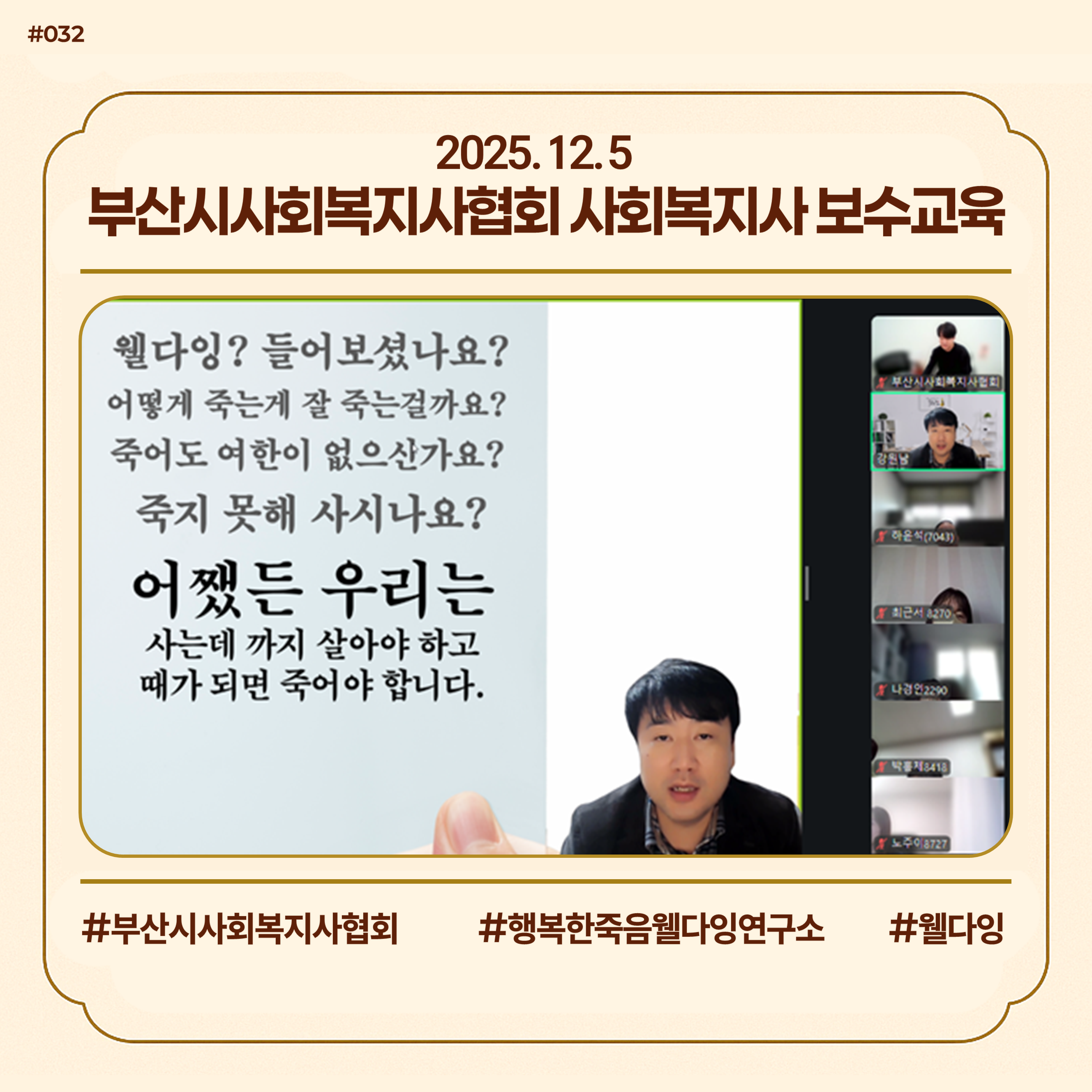 | 2025. 12. 9 정신재활시설 사랑밭 웰다잉 특강 (1) | 2025.12.14 |
