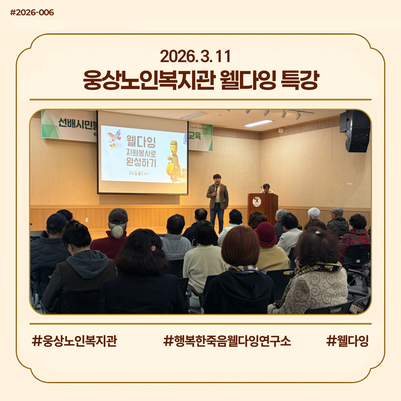 | 2026. 3. 10 산곡노인문화센터 웰다잉 프로그램 개강 (0) | 2026.03.10 |