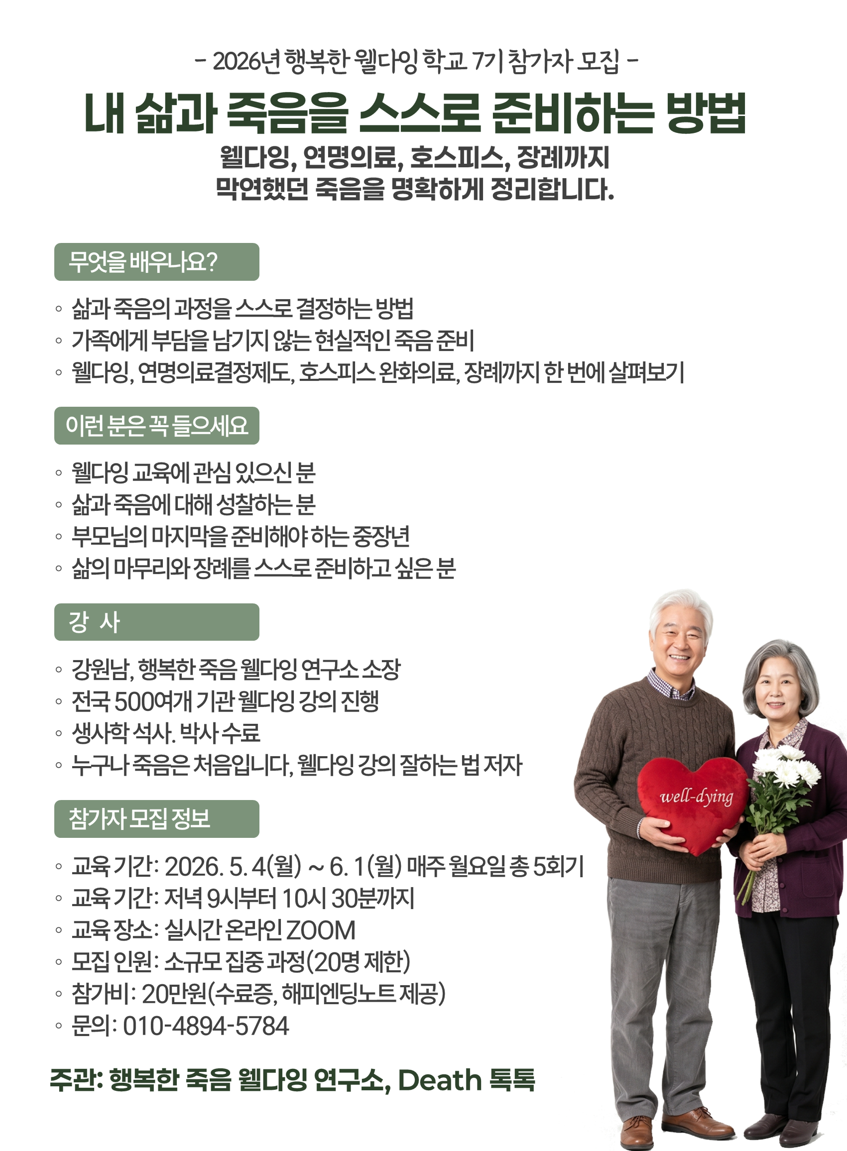 - 2026년 웰다잉 강사 학교 참가자 20% 할인(16만원)