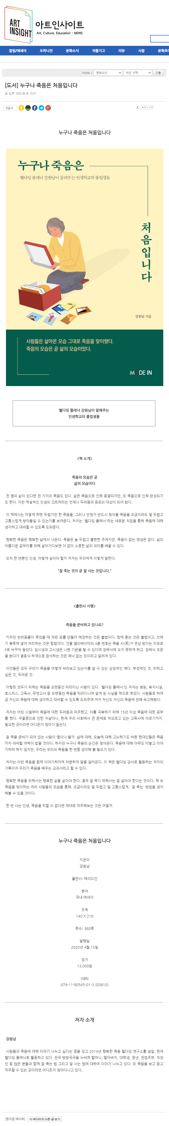 [도서] 누구나 죽음은 처음입니다문화예술은 '소통'입니다 - ART insight