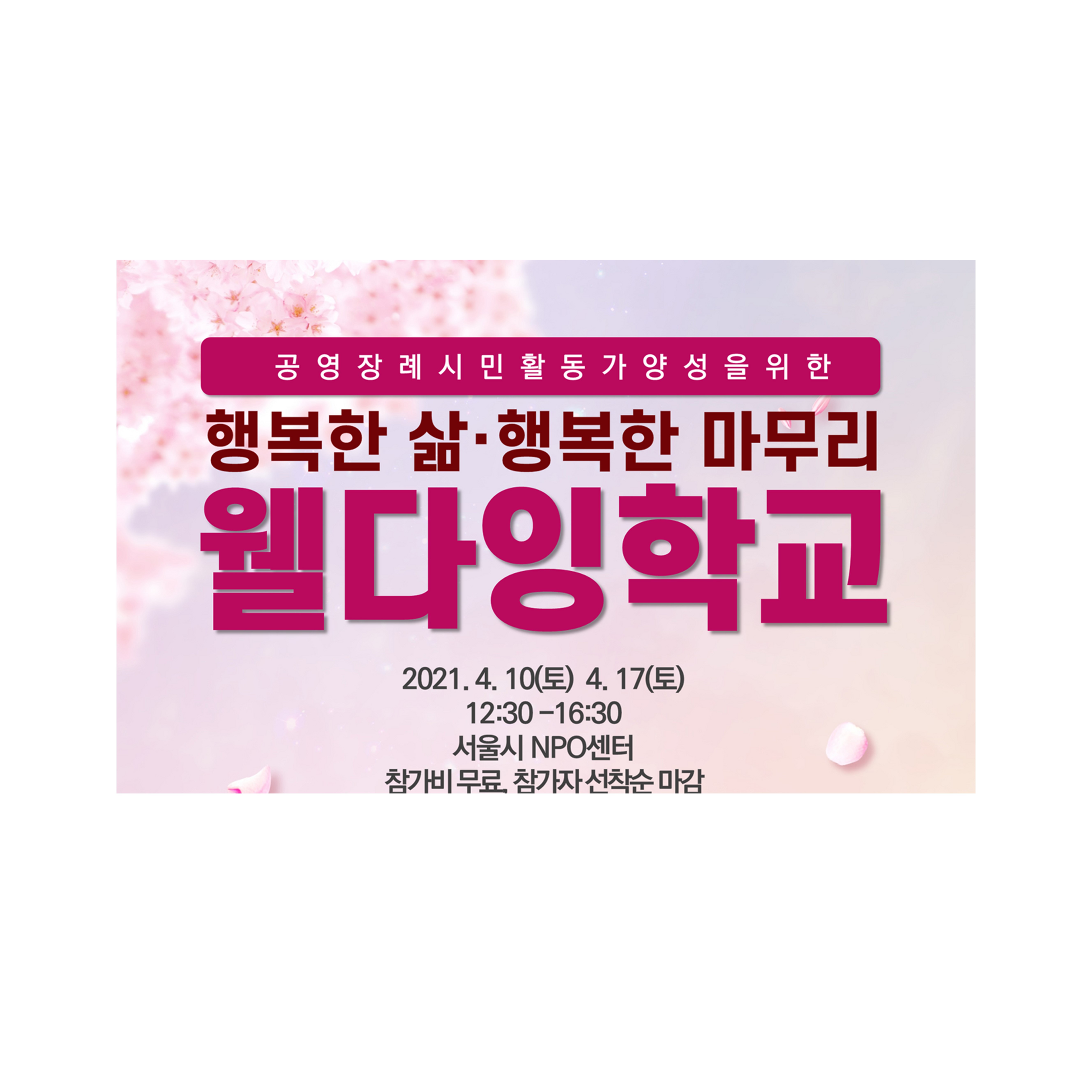 ・일시: 4월 10(토), 4월 17일(토) 오후 12시 30분부터 4시 30분까지