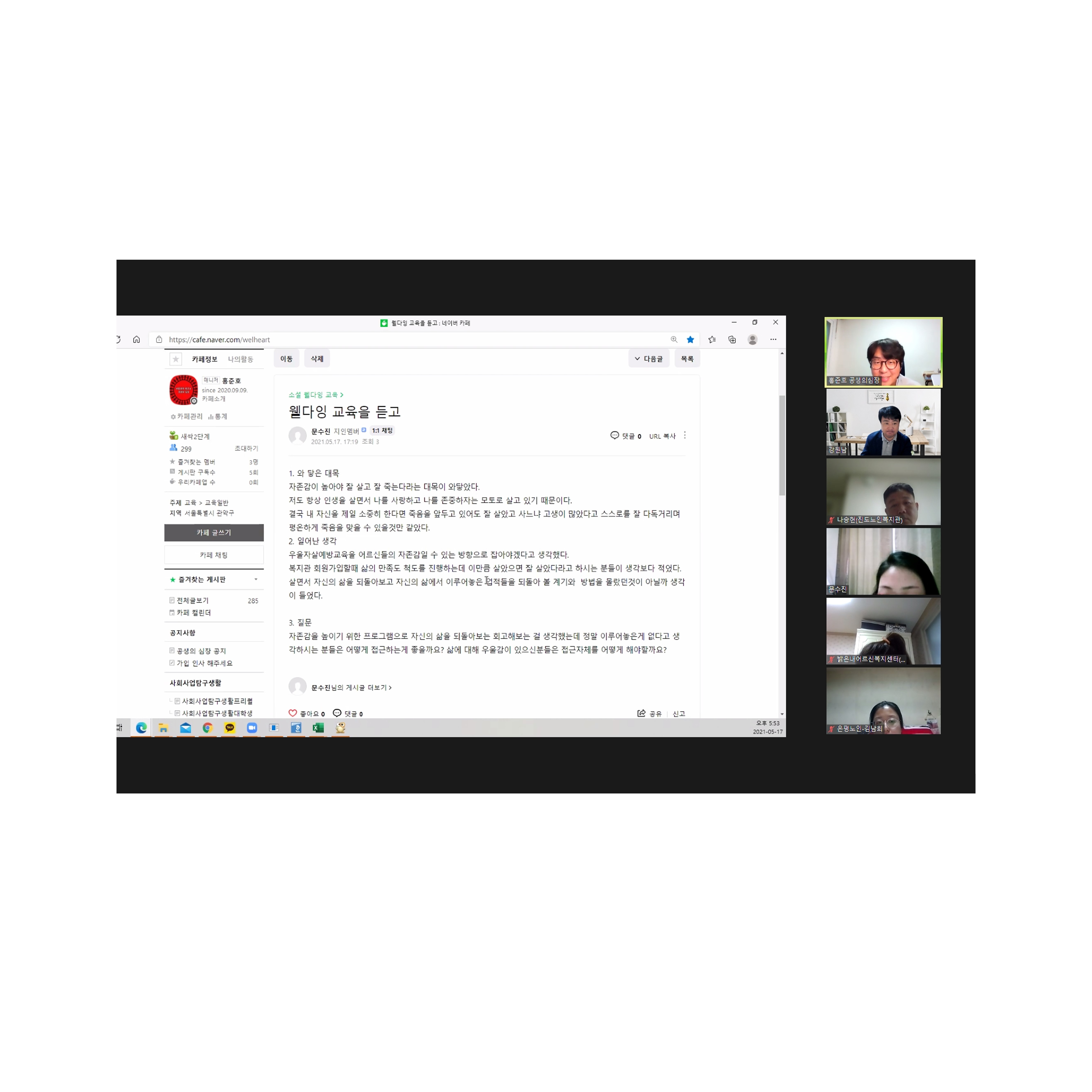 | 2021. 5. 26 사회복지시설 통합 Zoom 온라인 웰다잉 특강 (0) | 2021.05.27 |
