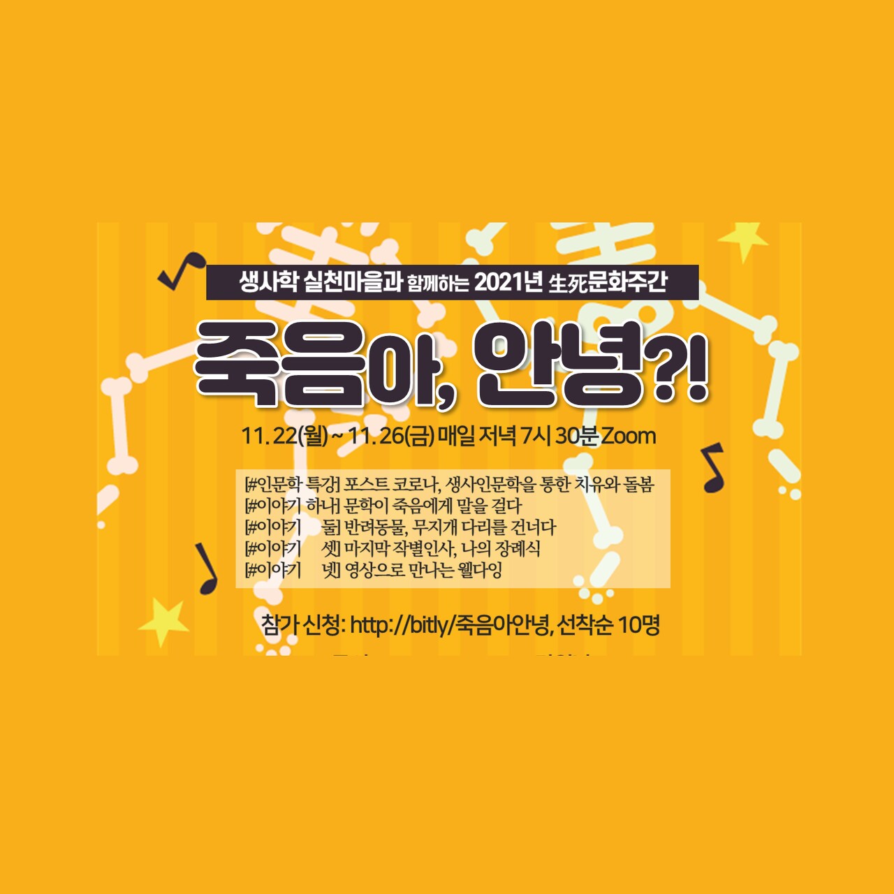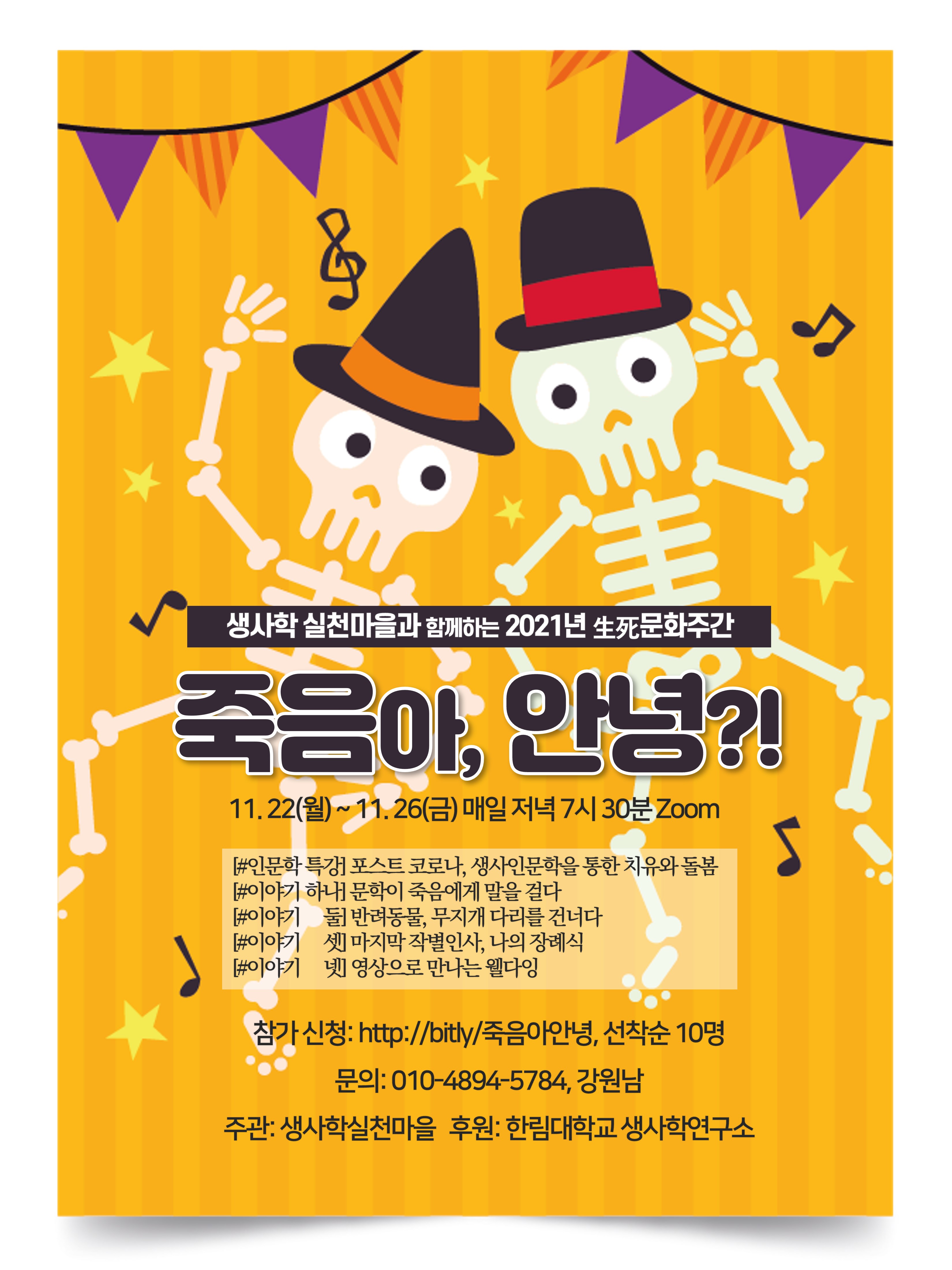 접수: 온라인 접수, https://bit.ly/죽음아안녕