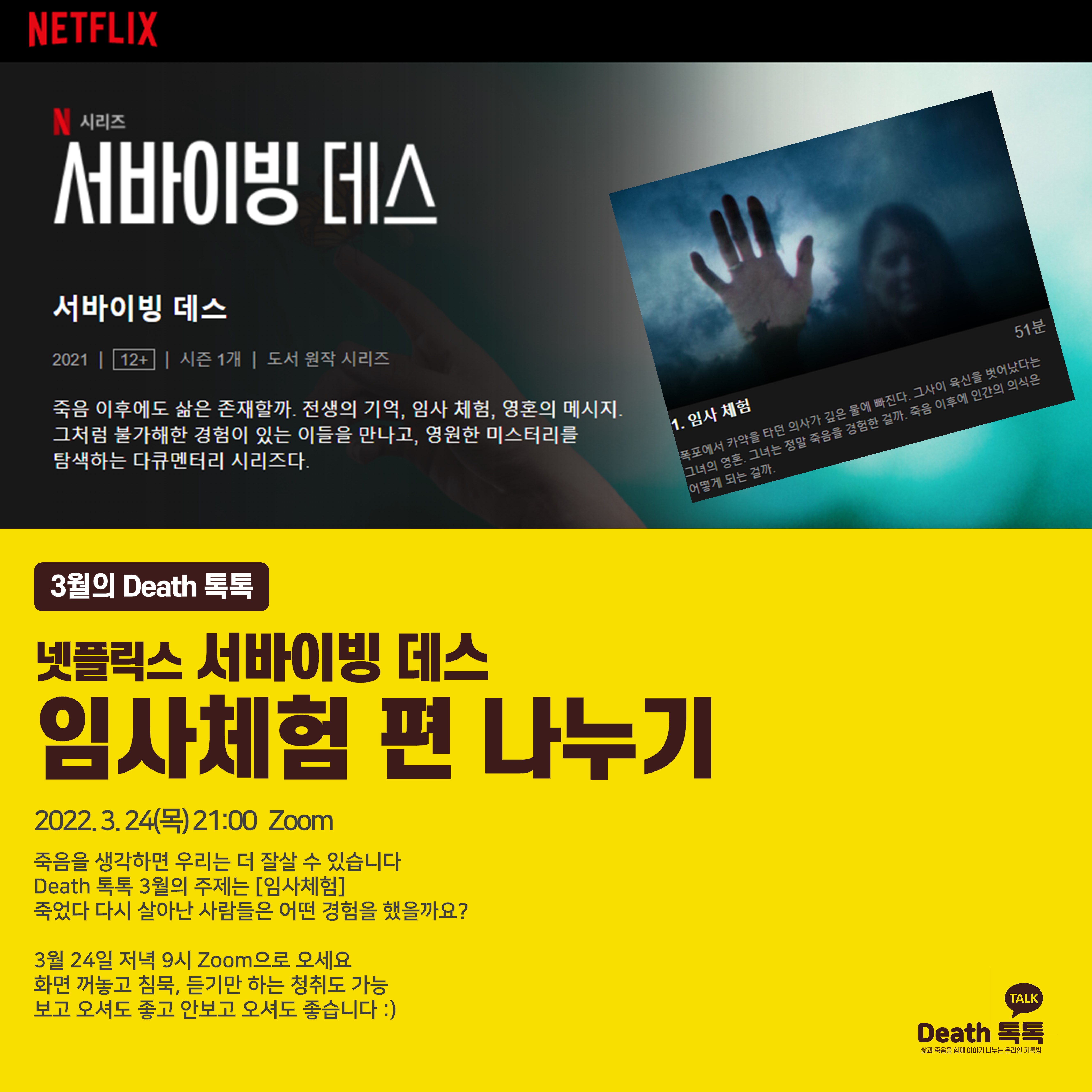 # 3월의 Death 톡톡 | 넷플릭스 서바이빙 데스 임사체험 편 나누기