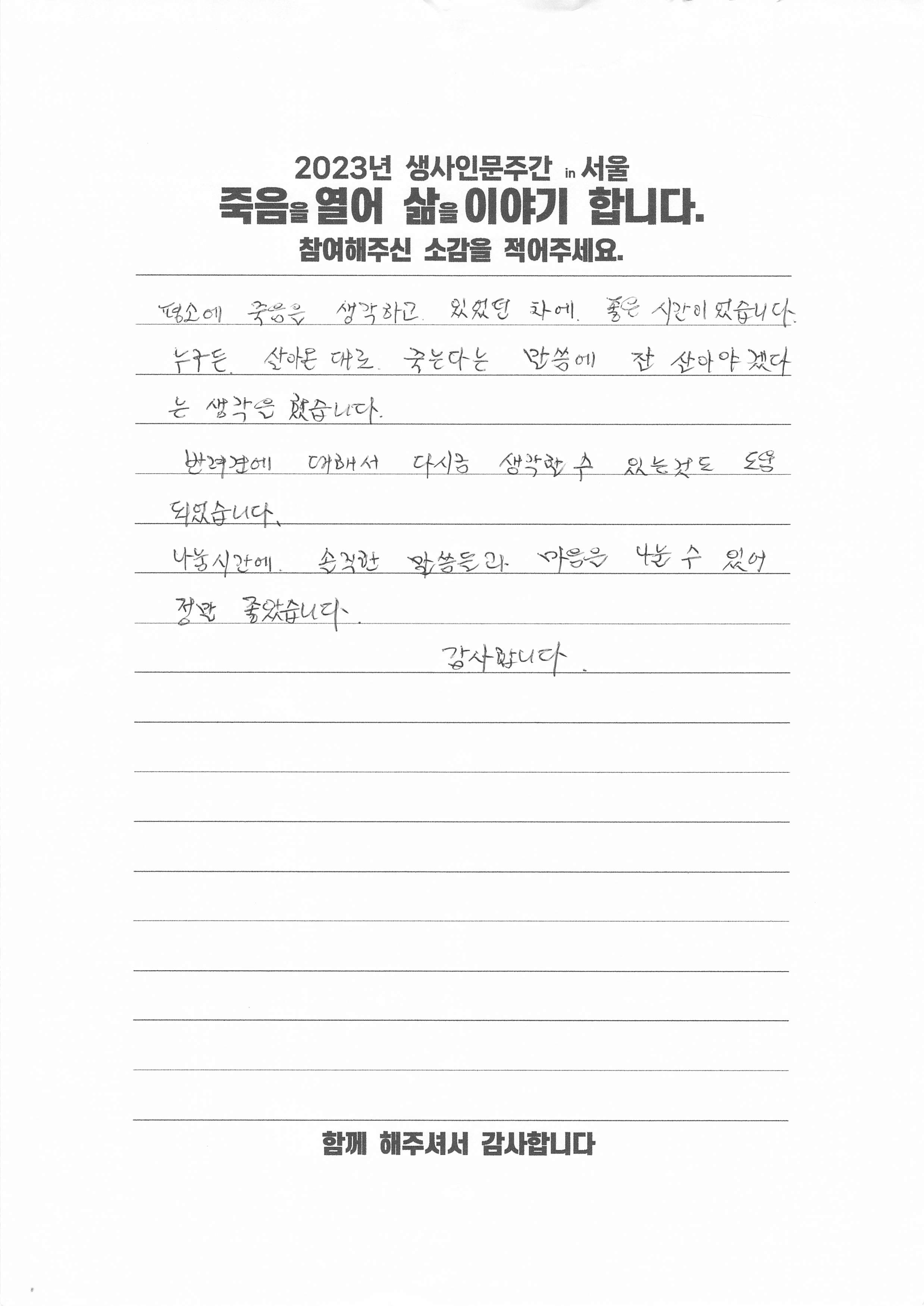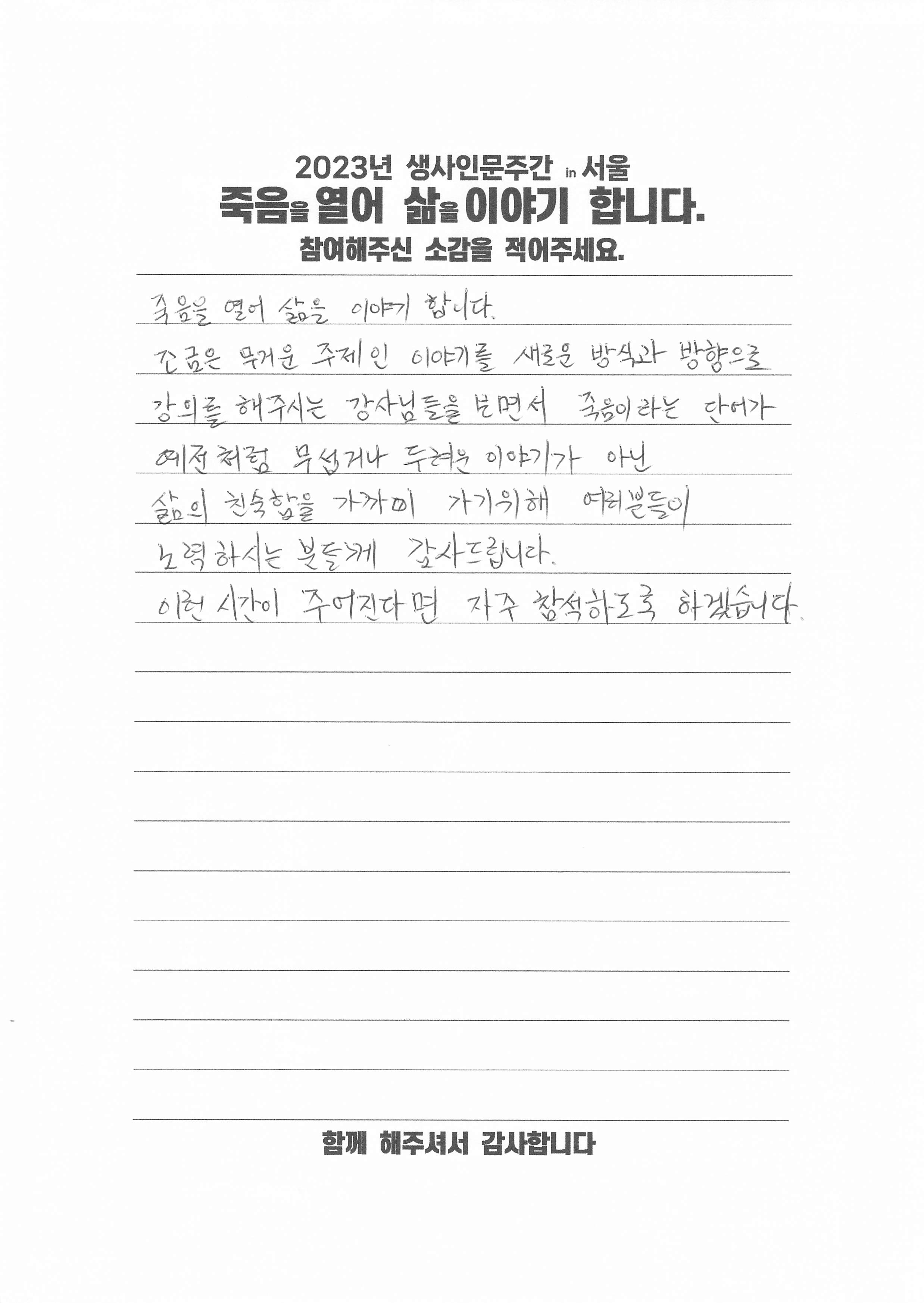 2023 생사인문주간 '죽음을 열어 삶을 이야기 합니다'를