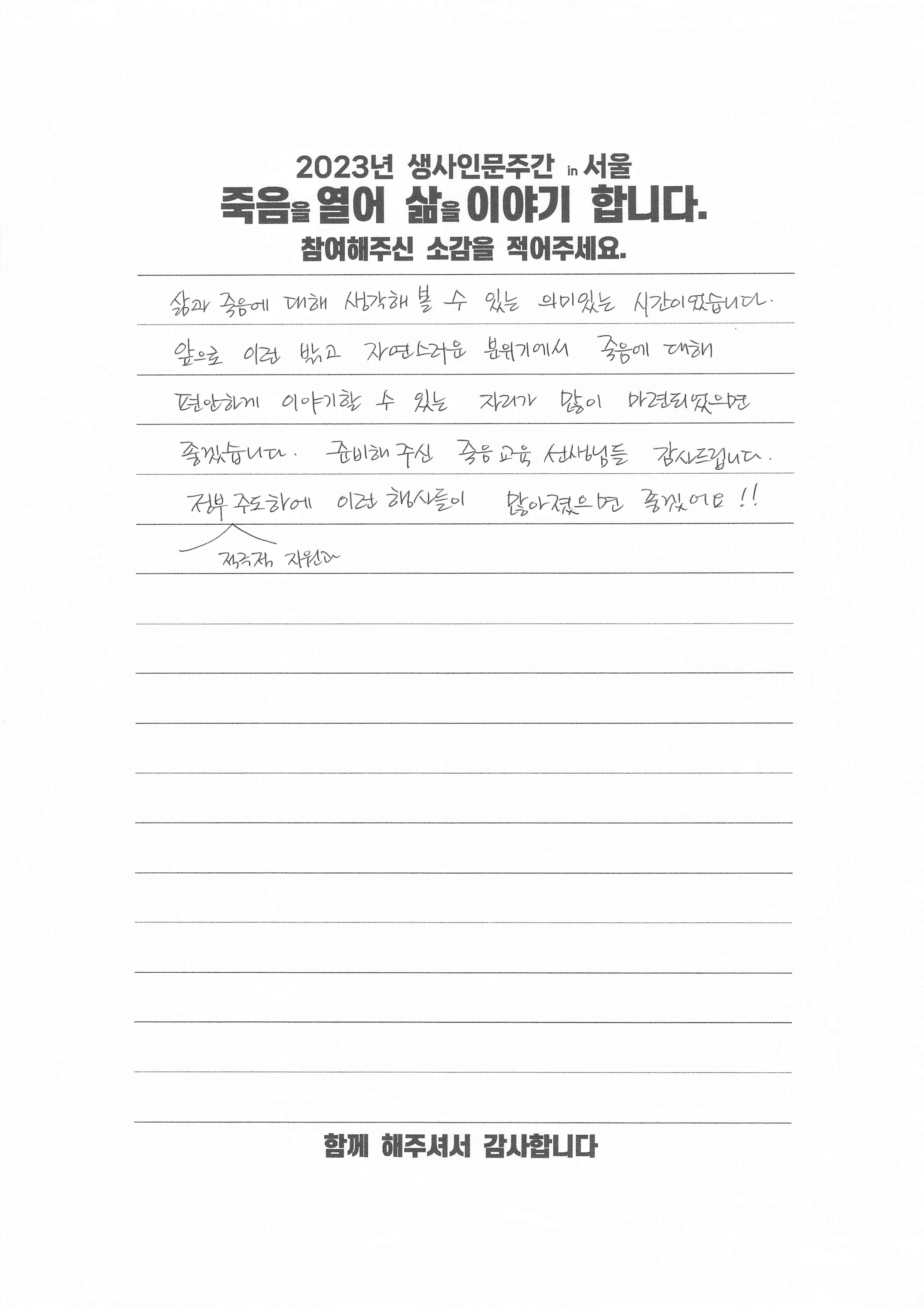 2023 생사인문주간 '죽음을 열어 삶을 이야기 합니다'를