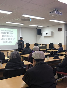 전체 글999 서울시 고독사 실태 및 예방 관련 자료집, 서울시복지재단 1. 서울시 고독사 실태파익 및 지원 방안 연구 자료집: https://goo.gl/Pvo4ZS2. 서울시 고독사 예방대책 토론회 자료집: https://goo.gl/czFHMP3. 서울시민 고립,외로움 실태 및 고독사 예방 방안 토론회 자료집: https://goo.gl/DW3vfq4. 고독사 위험 고립가구 특성과 지원모형 연구: https://goo.gl/obWsPK 2018. 11. 30. 2018. 11. 23 웰다잉 후원 토크 콘서트 '죽음에게 물었더니 삶이라도 답했다' 2018년 웰다잉 후원 토크 콘서트 '죽음에게 물었더니 삶이라도 답했다'를 성황리에 마쳤습니다. 이번 토크 콘서트는 행복한 죽음 웰다잉 연구소와 문화복지기획사 복컬이 주최하고 중림종합사회복지관이 후원하였으며, 서울시 무연고 사망자의 장례를 지원하고 있는 나눔과 나눔, 그리고 임종하는 분들의 마지막을 함께 해주시는 마리아의 작은 자매회가 함께 모여 자리를 마련하게 되었습니다. 행사 당일 70명에 가까운 분들이 자리를 채워주셨고총 130만원의 수익금이 발생하여 함께 참여해주신 나눔과 나눔, 그리고 마리아의 작은 자매회에 후원하였습니다. 물심양면으로 후원해주신 중림종합사회복지관 관계자 여러분들과함께 자리해주신 분들비록 참여해주시진 못하셨지만,마음과 후원금 모아주신분들께두 손 모아 진심으로 감사드립니다. 고맙고.. 2018. 11. 25. 2018. 11. 23 정부종합청사 웰다잉 특강 행복한 죽음 웰다잉 연구소에서는 2018년 11월 23일정부종합청사 직원분들을 모시고웰다잉 특강을 진행하였습니다. 참여해주신 임직원 분들과 자리를 마련해주신관계자 여러분들께 진심으로 감사드립니다. 웰다잉을 통하여 웰빙을 완성합니다.행복한 죽음 웰다잉 연구소 웰다잉강사, 웰다잉교육, 죽음준비교육, 자살예방교육평생교육, 인성교육, 자원봉사교육, 직무교육 교육 문의Phone: 070-8886-9988E-mail: planner@well-dying.kr홈페이지: http://well-dying.kr블로그: https://blog.naver.com/hdwelldying 2018. 11. 25. 2018. 11. 19 서대문노인종합복지관 웰다잉 특강 행복한 죽음 웰다잉 연구소에서는 2018년 11월 19일서대문노인종합복지관 이용 어르신들을 모시고웰다잉 특강을 진행하였습니다. 참여해주신 어르신들과 자리를 마련해주신관계자 여러분들께 진심으로 감사드립니다. 웰다잉을 통하여 웰빙을 완성합니다.행복한 죽음 웰다잉 연구소 웰다잉강사, 웰다잉교육, 죽음준비교육, 자살예방교육평생교육, 인성교육, 자원봉사교육, 직무교육 교육 문의Phone: 070-8886-9988E-mail: planner@well-dying.kr홈페이지: http://well-dying.kr블로그: https://blog.naver.com/hdwelldying 2018. 11. 20. 2018. 11. 18 분당 성요한 성당 웰다잉 특강 행복한 죽음 웰다잉 연구소에서는 2018년 11월 18일 분당 성요한 성당에서 재속프란치스코회 분당형제회 신자분들을 모시고 웰다잉 특강을 진행하였습니다. 참여해주신 신자분들과 자리를 마련해주신관계자 여러분들께 진심으로 감사드립니다. 웰다잉을 통하여 웰빙을 완성합니다.행복한 죽음 웰다잉 연구소 웰다잉강사, 웰다잉교육, 죽음준비교육, 자살예방교육평생교육, 인성교육, 자원봉사교육, 직무교육 교육 문의Phone: 070-8886-9988E-mail: planner@well-dying.kr홈페이지: http://well-dying.kr블로그: https://blog.naver.com/hdwelldying 2018. 11. 18. 2018. 11. 16 태안지역자활센터 웰다잉 특강 행복한 죽음 웰다잉 연구소에서는 2018년 11월 17일태안지역자활센터에서 자활사업 참여자 분들을 모시고 웰다잉 특강을 진행하였습니다. 참여해주신 돌보미분들과 자리를 마련해주신관계자 여러분들께 진심으로 감사드립니다. 웰다잉을 통하여 웰빙을 완성합니다.행복한 죽음 웰다잉 연구소 웰다잉강사, 웰다잉교육, 죽음준비교육, 자살예방교육평생교육, 인성교육, 자원봉사교육, 직무교육 교육 문의Phone: 070-8886-9988E-mail: planner@well-dying.kr홈페이지: http://well-dying.kr블로그: https://blog.naver.com/hdwelldying 2018. 11. 17. 2018. 11. 12 건강보험공단 대전중부지사 웰다잉 특강 행복한 죽음 웰다잉 연구소에서는 2018년 11월 12일건강보험공단 대전중부지사에서 보호자 분들을 모시고웰다잉 특강을 진행하였습니다. 참여해주신 보호자 분들과 자리를 마련해주신관계자 여러분들께 진심으로 감사드립니다. 웰다잉을 통하여 웰빙을 완성합니다.행복한 죽음 웰다잉 연구소 웰다잉강사, 웰다잉교육, 죽음준비교육, 자살예방교육평생교육, 인성교육, 자원봉사교육, 직무교육 교육 문의Phone: 070-8886-9988E-mail: planner@well-dying.kr홈페이지: http://well-dying.kr블로그: https://blog.naver.com/hdwelldying 2018. 11. 14. 2018.11. 12 번동5단지종합사회복지관 웰다잉 특강 행복한 죽음 웰다잉 연구소에서는 2018년 11월 12일번동5단지종합사회복지관 이용 어르신들을 모시고 웰다잉 특강을 진행하였습니다. 참여해주신 어르신들과 자리를 마련해주신관계자 여러분들께 진심으로 감사드립니다. 웰다잉을 통하여 웰빙을 완성합니다.행복한 죽음 웰다잉 연구소 웰다잉강사, 웰다잉교육, 죽음준비교육, 자살예방교육평생교육, 인성교육, 자원봉사교육, 직무교육 교육 문의Phone: 070-8886-9988E-mail: planner@well-dying.kr홈페이지: http://well-dying.kr블로그: https://blog.naver.com/hdwelldying 2018. 11. 14. 2018. 11. 10 세계엔딩산업 박람