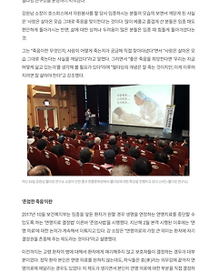 언론 보도28 [2022. 6. 15 이데일리]“죽기 전 양복 맞춘 故 송해처럼”…‘웰다잉’ 준비하는 어르신들 https://www.edaily.co.kr/news/read?newsId=02988086632362048&mediaCodeNo=257&OutLnkChk=Y “죽기 전 양복 맞춘 故 송해처럼”…‘웰다잉’ 준비하는 어르신들[르포] “송해 선생님이 돌아가시기 전에 양복을 맞춰달라고 했잖아요. 준비를 다하시고 좋은 데로 잘 가셨을 거에요. 내 삶도 송해 선생님처럼 마지막까지 활동 열심히 하고, 죽음을 준비했으면 좋겠 www.edaily.co.kr 2020. 5. 15. [2021. 10 29 브라보 마이 라이프]"좋은 죽음 알리자"... 웰다잉 소개하는 노인복지관들 https://bravo.etoday.co.kr/view/atc_view.php?varAtcId=12880 "좋은 죽음 알리자"… 웰다잉 소개하는 노인복지관들 ▲종로노인종합복지관의 웰다잉 교육 프로그램 ‘행복한 마무리를 위한 고백(Go Back)’ 기본반 수강생들이 자애 명상 수업을 듣고 있다.(종로노인종합복 bravo.etoday.co.kr 2020. 5. 15. [2021. 9. 16 인천일보]광명 시립 하안복지관, 독거 어르신 동행 프로젝트 진행 http://www.incheonilbo.com/news/articleView.html?idxno=1113020 광명 시립 하안복지관, 독거 어르신 동행 프로젝트 진행 - 인천일보 광명 시립 하안종합사회복지관은 독거 어르신을 위한 동행 프로젝트 “함께하는 친구, With Mate”의 메이트 양성 및 보수교육 강좌를 14일, 대면과 비대면 ZOOM 교육으로 진행했다. “함께하는 친 www.incheonilbo.com 2020. 4. 17. [2019. 12. 23 뉴스1]사랑의열매, 웰다잉&나눔 다룬'사과나무 노트'로 유산기부 알린다 https://www.news1.kr/articles/?3800087 사랑의열매, 웰다잉&나눔 다룬'사과나무 노트'로 유산기부 알린다 사실 앞에 겸손한 민영 종합 뉴스통신사 뉴스1 www.news1.kr 2020. 3. 25. [2021. 9. 6 국제뉴스]김해시, 심리방역서비스 '마음약국' 수강생 모집 http://www.gukjenews.com/news/articleView.html?idxno=2303366 김해시, 심리방역서비스 '마음약국' 수강생 모집 - 국제뉴스 (김해=국제뉴스) 황재윤 기자 = 김해시는 코로나19 장기화로 인해 우울감을 느끼는 시민들에게 심리방역서비스를 제공하고자 ‘마음약국’ 프로그램 참여자를 모집한다고 6일 밝혔다.코로나 시 www.gukjenews.com 2020. 1. 16. [2021. 7. 30 국제뉴스]영주시노인복지관, 아름다운 삶 아름다운 마무리 웰다잉 집단프로그램 수료식 진행 http://www.gukjenews.com/news/articleView.html?idxno=2277566 영주시노인복지관, 아름다운 삶 아름다운 마무리 웰다잉 집단프로그램 수료식 진행 - 국제뉴스 (영주=국제뉴스) 백성호 기자 = 영주시노인복지관(관장 이상철)은 ‘아름다운 삶, 아름다운 마무리’ 웰다잉 집단프로그램 수료식을 진행했다.이번 웰다잉 집단프로그램은 4월부터 7월까지 약 4 www.gukjenews.com 2020. 1. 16. [2021. 4. 18 국제뉴스]영주시노인복지관, 2021 웰다잉 문화조성 특강 개최 http://www.gukjenews.com/news/articleView.html?idxno=2198857 영주시노인복지관, 2021 웰다잉 문화조성 특강 개최 - 국제뉴스 (영주=국제뉴스) 백성호 기자 = 영주시노인복지관(관장 이상철)은 3월 24일(수), 3월 31일(수), 4월 7일(수) 오후 1시 30분 영주시노인복지관 지하 강당 소백홀에서 복지관 회원 40명을 대상으로 총 3차 www.gukjenews.com 2020. 1. 16. [2021. 1. 4 브라보 마이 라이프]새해 '웰다잉' 준비는 '웰빙'의 시작 https://bravo.etoday.co.kr/view/atc_view.php?varAtcId=11894 새해 ‘웰다잉’ 준비는 ‘웰빙’의 시작 일본의 에세이스트 이노우에 가즈코는 자신의 저서에서 행복한 노년을 위해서는 50대부터 덧셈과 뺄셈이 필요하다고 조언했다. 안 쓰는 물건이나 지나 bravo.etoday.co.kr 2020. 1. 16. [2020. 4. 23 시사매거진]누구나 죽음은 처음입니다. http://www.sisamagazine.co.kr/news/articleView.html?idxno=318864 누구나 죽음은 처음입니다 - 시사매거진 [시사매거진=여호수 기자] 모든 인간에겐 잘났든 못났든, 돈이 많든 적든 한 가지 공통점이 있다.그것은 착하게 살았던 죄를 짓고 살았던, 나이가 적든 많든 상관없이 우리는 모두 반드시 죽는다 www.sisamagazine.co.kr 2020. 1. 16. [2020. 4. 4 아트인사이트]누구나 죽음은 처음입니다. https://www.artinsight.co.kr/news/view.php?no=47130 [도서] 누구나 죽음은 처음입니다 [도서] 누구나 죽음은 처음입니다문화예술은 '소통'입니다 - ART insight www.artinsight.co.kr 2020. 1. 16. [2019. 9. 30 뉴스포스트][인터뷰] "사람은 살아온 모습 그대로 죽음을 맞이한다" http://www.newspost.kr/news/articleView.html?idxno=73298 2019. 10. 1. [2019. 6. 24 한국투데이]'사람은 살아온 모습 그대로 죽음을 맞이한다' 강원남 소장의 웰다잉 https://www.hantoday.net/news/articleView.html?idxno=19263 2019. 10. 1. 이전 1 2 3 다음