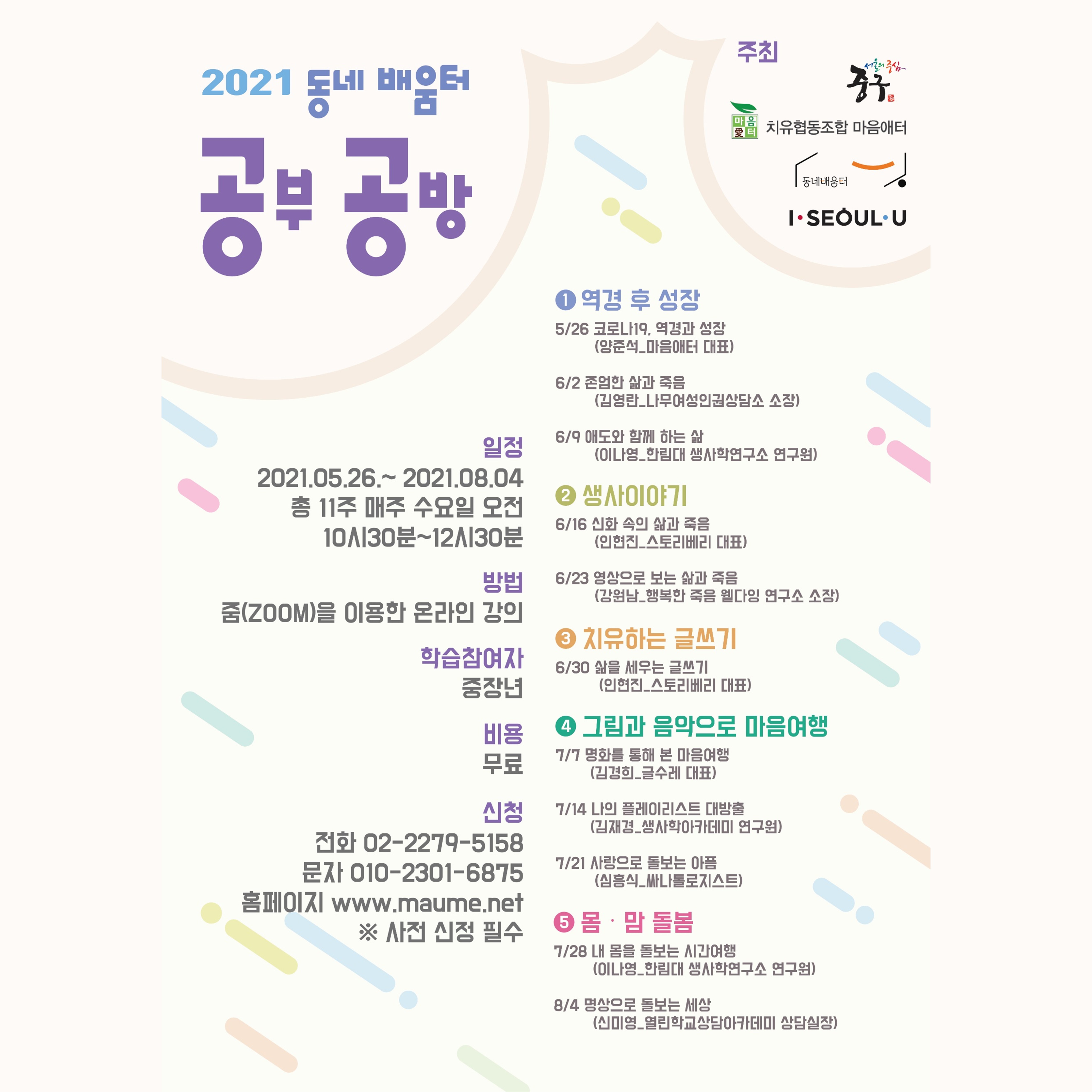 마음애터가 주최하는 2021년 동네 배움터 공부공방에 참여하게 되었습니다.
